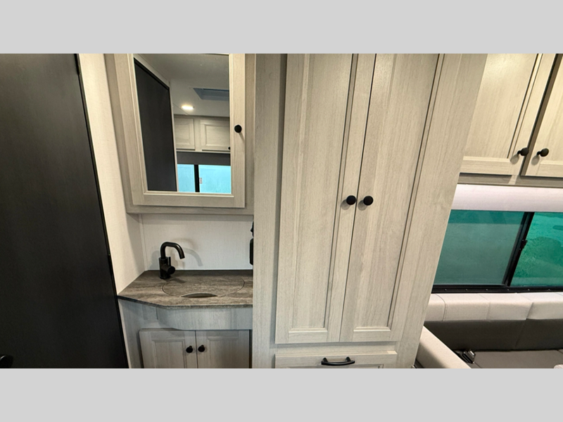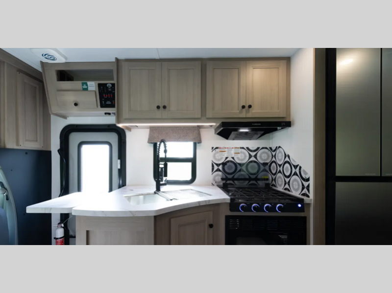 Each model includes an EZ Ryde upgraded suspension system for a smooth drive each time, plus a 10" touch screen and backup camera/side view cameras with a 3-way monitor for easy maneuvering at the campground. The 2" aluminum framed laminated sidewalls and SuperLite composite substrate provide a strong motorhome made to last, and the block foam insulation means you can camp year around. Head inside to find black out roller shades, soft touch self-closing drawer guides, an oxygen-infused shower head, plus a 12V USB charging station to keep your electronics charged and ready to go.