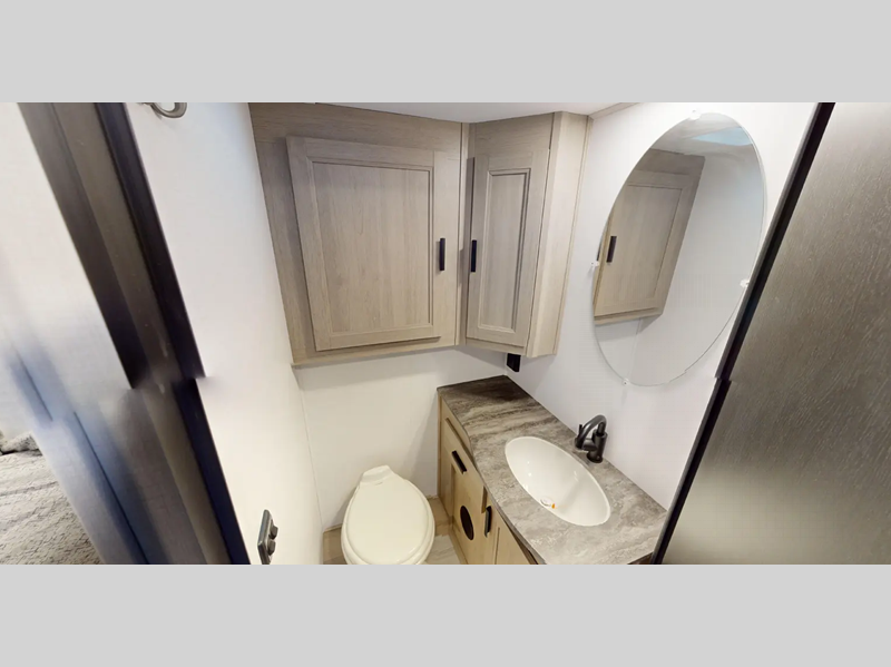 Sleeps 6 Slides 2 Length 27 ft 1 in Ext Width 8 ft 5 in Ext Height 11 ft 3 in Exterior Color Standard Graphics. Moonstone, Indigo Options GVWR 14500 lbs Fresh Water Capacity 44 gals Grey Water Capacity 39 gals Black Water Capacity 39 gals Furnace BTU 30000 btu Generator 4.0KW Gas Fuel Type Gas Chassis Ford Fuel Capacity 55 gals Wheelbase 182 in Number Of Bunks 1 Available Beds RV Queen Refrigerator Type 12V Refrigerator Size 10.7 cu ft Convection Cooking Yes Cooktop Burners 3 Shower Size 24" x 36" Number of Awnings 1 Axle Weight Front 5000 lbs Axle Weight Rear 9600 lbs LP Tank Capacity 41 lbs. Water Heater Capacity 6 gal Water Heater Type DSI Gas/Electric AC BTU 15000 btu TV Info BR 12V, Bunk 12V LED Awning Info 18' Power w/ LED Lights Gross Combined Weight 22000 lbs Shower Type Standard Electrical Service 30 amp Similar Floorplans