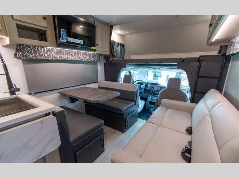 Sleeps 5 Slides 1 Length 23 ft 10 in Ext Width 8 ft 5 in Ext Height 11 ft 3 in Hitch Weight 5000 lbs GVWR 12500 lbs Fresh Water Capacity 35 gals Grey Water Capacity 32 gals Black Water Capacity 27 gals Furnace BTU 30000 btu Generator 4.0KW Gas Fuel Type Gas Chassis Ford E350 Fuel Capacity 55 gals Wheelbase 158 in Number Of Bunks 1 Available Beds Queen Refrigerator Type 12V Refrigerator Size 10.7 cu ft Convection Cooking Yes Cooktop Burners 3 Shower Size 24" x 32" Number of Awnings 1 Axle Weight Front 5000 lbs Axle Weight Rear 8500 lbs LP Tank Capacity 41 lbs Water Heater Capacity 6 gal Water Heater Type DSI Gas/Electric AC BTU 13500 btu TV Info LR 12V LED TV Awning Info 14' Power with LED Lights Gross Combined Weight 18000 lbs Shower Type Standard Electrical Service 30 amp Similar Floorplans