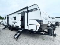 These travel trailers are extended season ready with a 2" aluminum framed floor and block foam insulation, plus there is a sealed underbelly with forced heat and radiant foil insulation. You'll love the Surf(X) seamless countertops throughout, and there is a tankless water heater for endless hot showers. Outside, a power tongue jack is ultra convenient and there is a hot and cold spray port to wash off hiking gear!