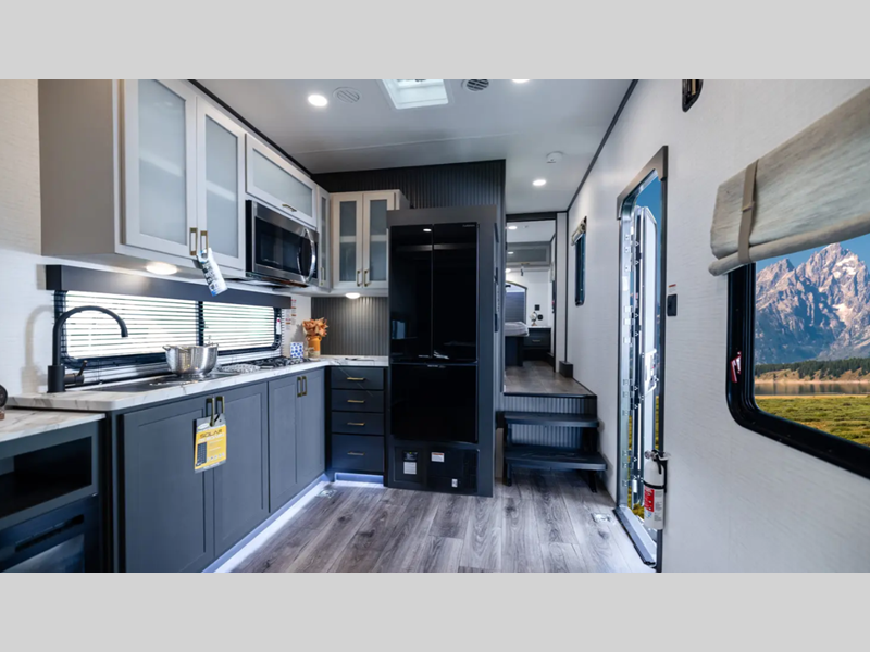 There is a rear beaver tail frame, a docking station, and a magnetic screen wall so you can let the fresh air in without letting the bugs in. You will be delighted with the fiberglass floor insulation and LED lights, and there is a tankless water heater to provide endless hot showers after trail riding. The Alumifoil insulated enclosed underbelly will help extend your camping season, and the patio railing kit will let you enjoy more time outdoors once the toys are unloaded.