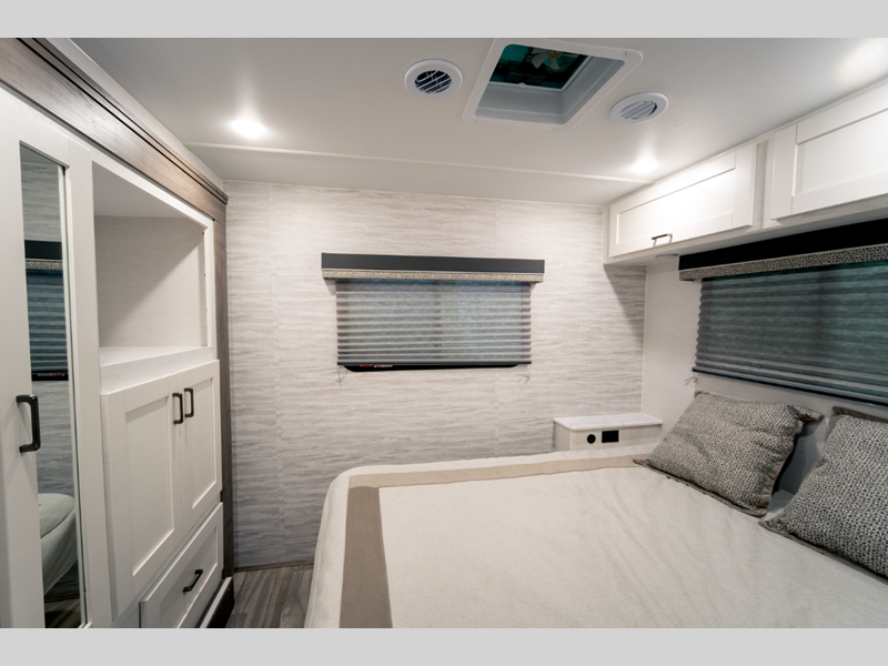 Sleeps 5 Length 24 ft Ext Width 8 ft 4 in Ext Height 11 ft 3 in Int Height 7 ft GVWR 12500 lbs Fresh Water Capacity 31 gals Grey Water Capacity 31 gals Black Water Capacity 31 gals Furnace BTU 25000 btu Fuel Type Gasoline Engine 7.3L V8 Chassis Ford E350 Horsepower 350 hp Fuel Capacity 55 gals Number Of Bunks 1 Available Beds RV Queen Torque 425 ft-lb Refrigerator Type 12V Double Door Refrigerator Size 10.2 cu ft Cooktop Burners 3 LP Tank Capacity 42 lbs Water Heater Type Tankless Gas AC BTU 13500 btu Shower Type Standard Electrical Service 30 amp Similar Floorplans