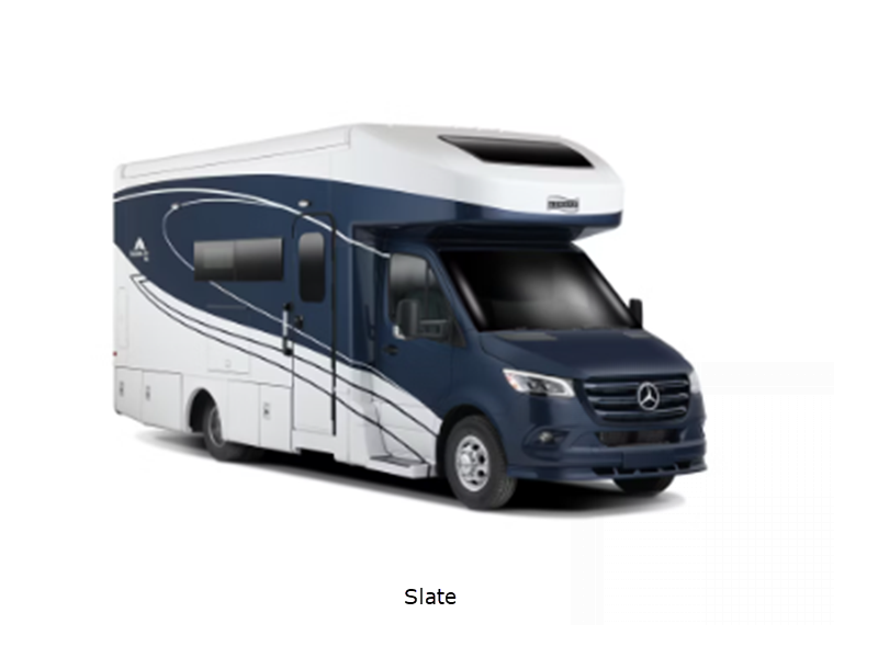 Sleeps 6 Slides 1 Length 26 ft Ext Width 7 ft 8 in Ext Height 11 ft 3 in Int Height 6 ft 8 in Exterior Color Full-Paint Graphics; Carbon, Cobalt, Platinum, Quartz, Slate Hitch Weight 5000 lbs GVWR 12125 lbs Fresh Water Capacity 30 gals Grey Water Capacity 41 gals Black Water Capacity 41 gals Furnace BTU 25000 btu Generator RVMP 4.0 kW Fuel Type Diesel Chassis Mercedes-Benz 4500 Sprinter Horsepower 308 hp Fuel Capacity 25 gals Wheelbase 170 in Number Of Bunks 1 Available Beds Murphy Torque 332 ft-lb Refrigerator Type Suburban Refrigerator Size 8 cu ft Convection Cooking Yes Cooktop Burners 2 Shower Size 32" x 24" Number of Awnings 1 Axle Weight Front 4630 lbs Axle Weight Rear 7934 lbs LP Tank Capacity 12.2 gals. Water Heater Type On Demand AC BTU 15000 btu TV Info Samsung LED TV; LR, 32" Ext. Awning Info Girard Teardrop Side w/Wind Sensor and LED Lights Gross Combined Weight 15250 lbs Shower Type Standard Electrical Service 30 amp Similar Floorplans