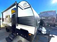 The whole family will love camping in this travel trailer! The kiddos can sleep on the set of bunk beds and you can sleep on the queen bed in the front. They can even invite a friend or two to tag along and sleep on the booth dinette when you aren't using it. Enjoy a meal prepared with the two-burner stove. Everyone can freshen up in the rear corner bathroom with the shower. When packing-up store all of your outdoor gear inside the front exterior storage!