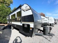Head to your local state park in this spacious travel trailer! You'll love the oversized windows to let more natural light in, and the sofa slide out will provide more interior space. An L-shaped counter with stools provides a place to enjoy your morning coffee at, or you may find yourselves on the sofa within the slide out. The 12V refrigerator and pantry can hold all your food for the week. You'll feel right at home in the front private bedroom that includes a camp king bed, dual wardrobes, and an overhead cabinet for even more storage, while your guests take the double-size bunks in the back!