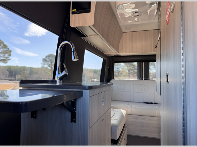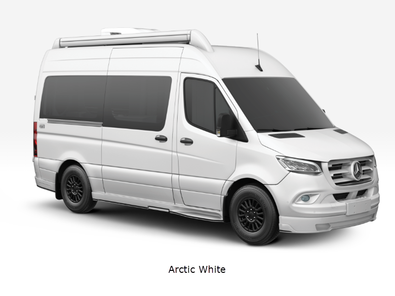 Sleeps 2 Length 19 ft 6 in Ext Width 7 ft 8 in Ext Height 10 ft Int Height 6 ft 3 in Interior Color Terrain, Carbon Exterior Color Arctic White, Iridium Silver, Obsidian Black. Hitch Weight 5000 lbs GVWR 9050 lbs Fresh Water Capacity 16 gals Grey Water Capacity 26 gals Black Water Capacity 13 gals Tire Size LT245/75R Fuel Type Diesel Engine Mercedes-Benz 2.0L 4 Cylinder Twin Scroll Turbo Chassis 2500 Mercedes-Benz Sprinter AWD Horsepower 208 hp Fuel Capacity 24.5 gals Available Beds Queen Torque 332 ft-lb Refrigerator Type 12V Refrigerator Size 3.1 cu ft Cooktop Burners 1 Number of Awnings 1 Water Heater Type Bypass AC BTU 15000 btu TV Info Smart TV Awning Info Girard Power with LED Lighting Gross Combined Weight 13930 lbs Shower Type Wet/Bath Shower Electrical Service 30 amp Solar Wattage 220 watts