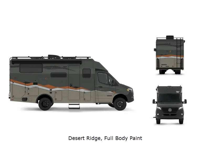Sleeps 3 Length 24 ft 6 in Ext Width 7 ft 3 in Ext Height 10 ft 11 in Int Height 6 ft 8 in Interior Color Veredis, Juniper Exterior Color Desert Ridge,Selenite(Full Body Paint); Raw Sienna ll, Verdant ll; with or without Graphics Hitch Weight 5000 lbs GVWR 11030 lbs Fresh Water Capacity 50 gals Grey Water Capacity 51 gals Generator 2,500-watt LP Fuel Type Diesel Engine 2.0L Turbo Diesel 4 Cylinder Chassis Mercedes-Benz Sprinter AWD Fuel Capacity 24.5 gals Wheelbase 170 in Available Beds Two Twin Refrigerator Type Single Door 12V Refrigerator Size 5.3 cu ft Convection Cooking Yes Cooktop Burners 1 Shower Size 24" x 30" Number of Awnings 1 Axle Weight Front 4410 lbs Axle Weight Rear 7720 lbs LP Tank Capacity 40 lbs Water Heater Type Truma AquaGo Tankless Comfort Plus AC BTU 13500 btu Basement Storage 64 cu. ft. Awning Info 13' Power w/ LED Light and Bluetooth Gross Combined Weight 15250 lbs Shower Type Wet/Bath Shower Electrical Service 30 amp Solar Wattage 530 watts Similar Floorplans