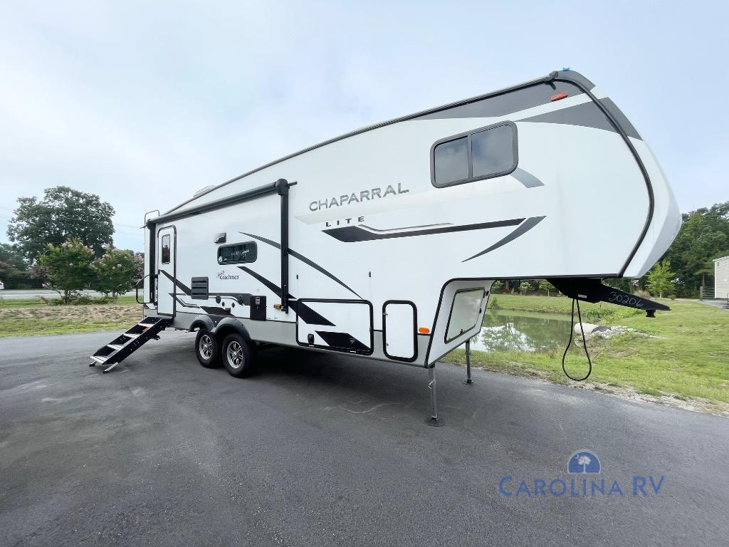 Comfort, convenience, and an easy haul is what you will find with each one of these Coachmen RV Chaparral Lite fifth wheels! Their Tri-Tex powder coated frame technology is up to 5X more weather resistant, and the dual-sided Azdel composite sidewall panels is ultra durable. The Road Armor suspension by Trail Air comes with heavy duty shackles and wet bolts so you can be sure it will hold up through every adventure, and you might want to add the Furrion exterior back-up and sideview camera prep for easy parking. You will feel right at home inside with roller night shades, Thomas Payne furniture, a high BTU output modern electric fireplace, and many more comforts! The exterior is just as inviting with its electric awning with LED lights, Solid Step entry steps, and pass-through storage for all your gear!