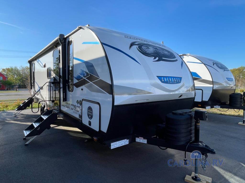 With any Cherokee Alpha Wolf travel trailer by Forest River you'll enjoy outstanding amenities, quality construction, and an affordable price. Each model features a "ToughBend" rigid skirt metal design, 5/8" tongue and groove plywood floor decking, and a "SuperTruss" roof structure that will hold up through years of camping memories. There is a "blackout" kitchen appliance package indoors, along with an LED interior lighting package, a 15,000 BTU quick cool central air conditioning, and many more comforts. These travel trailers include a utility center convenience light so you can easily check tank levels, and the outdoor TV prep means you can bring along your television for the big game. The Limited Package, Weather Guard Package, and Convenience Package include additional features found on select models, and there available options that can be added to further customize your Cherokee Alpha Wolf!