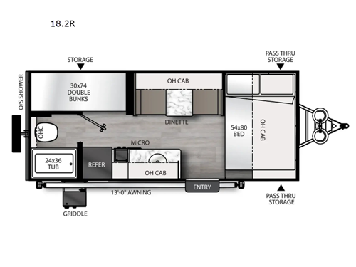 Your family of four will love this versatile Remote bunk travel trailer including two 30" x 74" bunks in back that the children will love, and a 54" x 80" full-size bed up front for you. There is also a booth dinette where you can enjoy meals together. You will find ample storage inside and out with overhead cabinets plus storage beneath the bunks in back and on either side up front. An outside shower is also available which you can use to rinse off before heading inside to keep the dirt where it belongs!
