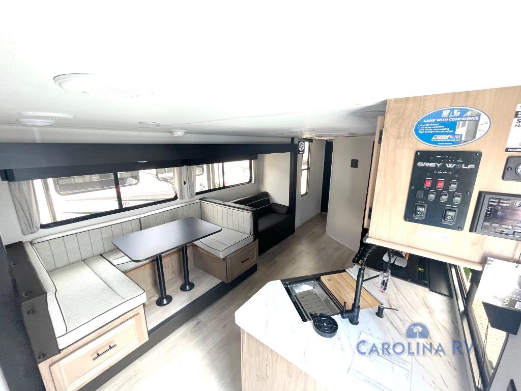 Whether it's a journey that will take you to new locations or a tried-and-true getaway to that favorite and memorable destination, the Forest River Cherokee Grey Wolf travel trailers and toy haulers are going to make the trip worth it every single time! You can travel in confidence with the premium wheel package, seamless roofing membrane with heat reflectivity, Power Gear frame technology with space-saver rail design, and Cherokee back-up camera system. The Cherokee Grey Wolf's interior is highly attractive with its stainless steel kitchen suite package and premium bedding ensemble and comforter. You will also find a black waste tank flush-out kit, an outside shower with hot and cold water, an armored underbelly tank enclosure, and an RV grill quick connect.
