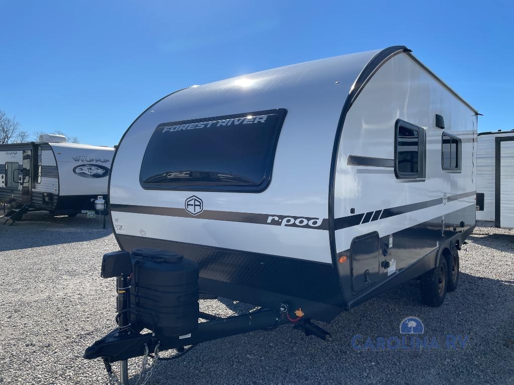 With any R-Pod travel trailer by Forest River, you will enjoy affordable luxury at the lowest tow weight in its class! There is a sealed underbelly with forced heat, a curved dual-pane acrylic front window with a bug screen and night shade, plus a large roof mounted solar panel for off-grid capabilities. The 15K A/C unit will keep you comfortable during the summer camping months, and the tankless water heater will provide endless hot showers after hiking, biking, swimming and more! Each model also includes a black glass friction hinge entrance door, roof ladder prep, exterior motion lighting, plus a hot and cold exterior spray port to wash off sand from the beach. Inside, you'll enjoy seamless Surf-X kitchen countertops, blackout roller shades, and a central vacuum system for hassle-free cleaning!