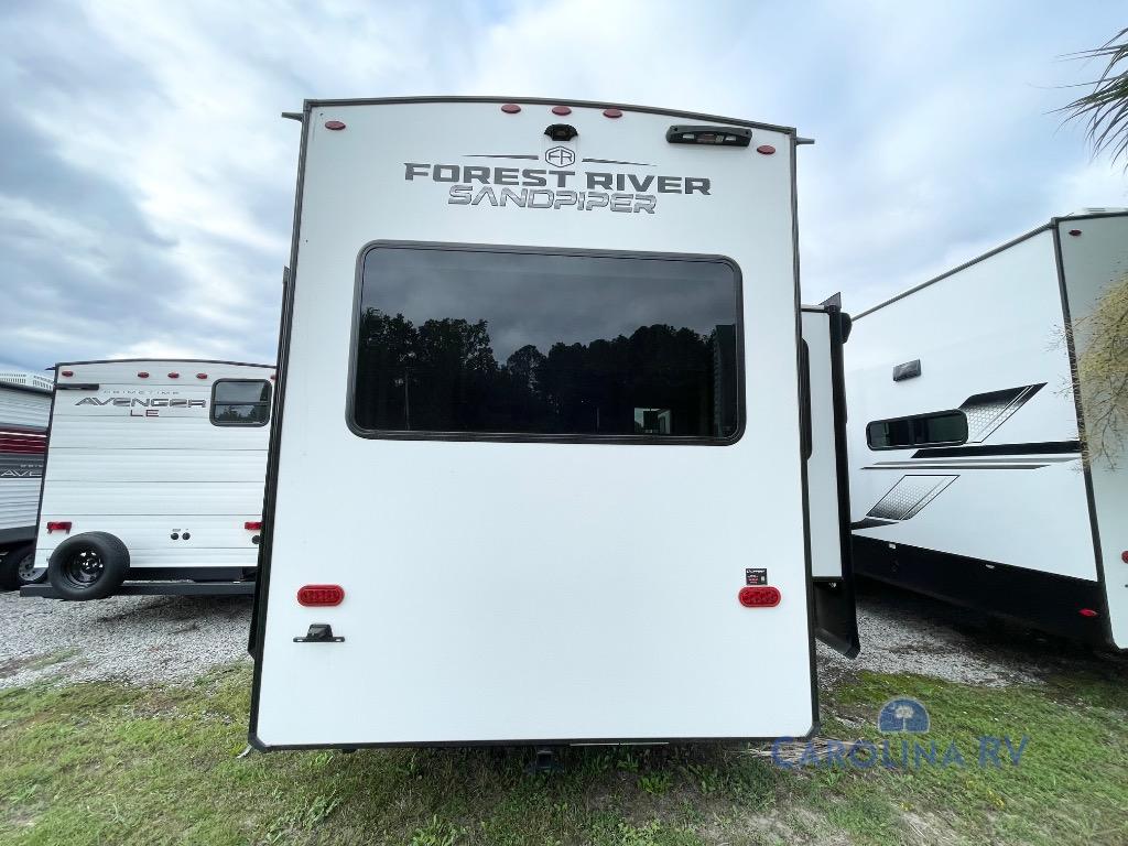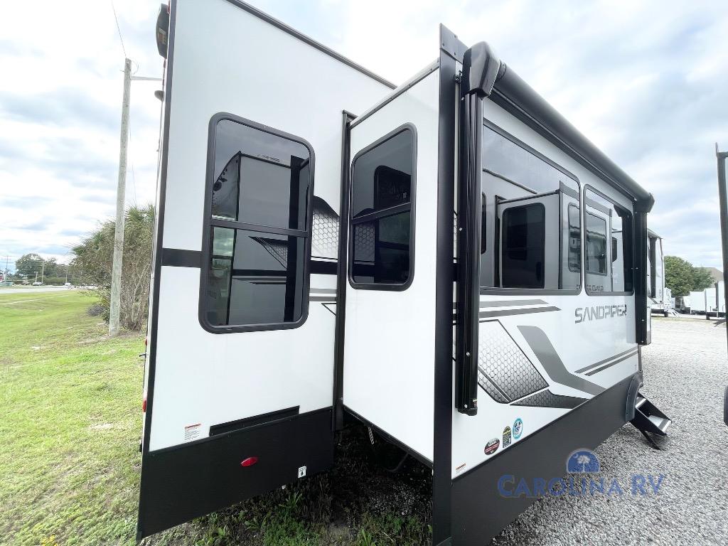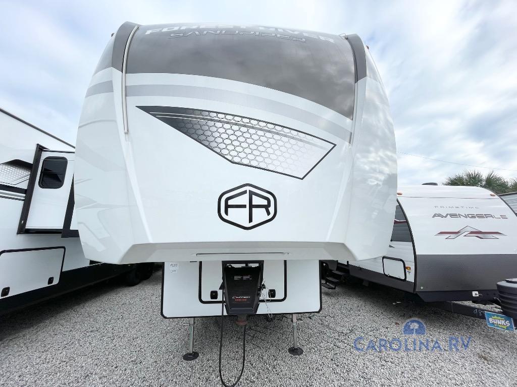 You will find the perfect balance of size, space, features, and luxury with any one of these Forest River Sandpiper fifth wheels! They are constructed with a welded aluminum framed vacuum bonded laminated superstructure, a cambered powder coated frame with rust prohibitor, and a fully enclosed underbelly for added protection against the elements. The large tinted windows come with a 80/20 UV prohibitor or you can choose the optional dual pane windows. Some hassle-free amenities include a 60k BTU on-demand water heater, full coach water filter system, tire pressure monitor system, and an electric leveling system! Inside, you'll enjoy stainless steel appliances, solid surface countertops, Beachside Sundance linoleum, recessed residential lighting, and many more comforts!