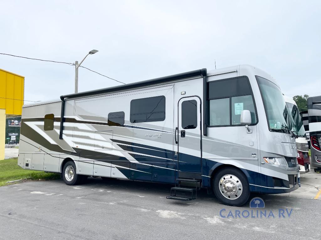 Each Bay Star Class A gas motorhome by Newmar delivers a smooth ride thanks to the standard electronic stability control, along with the 7.3-liter V8 engine with 350 HP and 468 lb./ft. of torque. The exterior is sure to turn heads with its full-paint Masterpiece Finish, and you'll have three interior decor choices and three wood choices to truly make the coach your own. Each model includes newly styled Williamsburg furniture, luxurious vinyl plank flooring, polished solid surface countertops in the kitchen, plus many more comforts. Head outside to find lit basement storage, a 5.5kW Onan generator with remote switch, and smart level hydraulic leveling jacks with a Bluetooth compatible touch pad for set up easy as 1-2-3! You can further customize your coach with the many options that are offered!