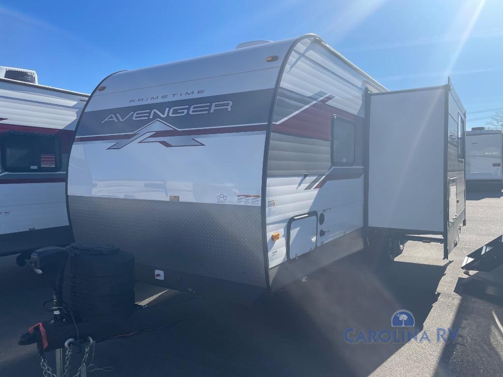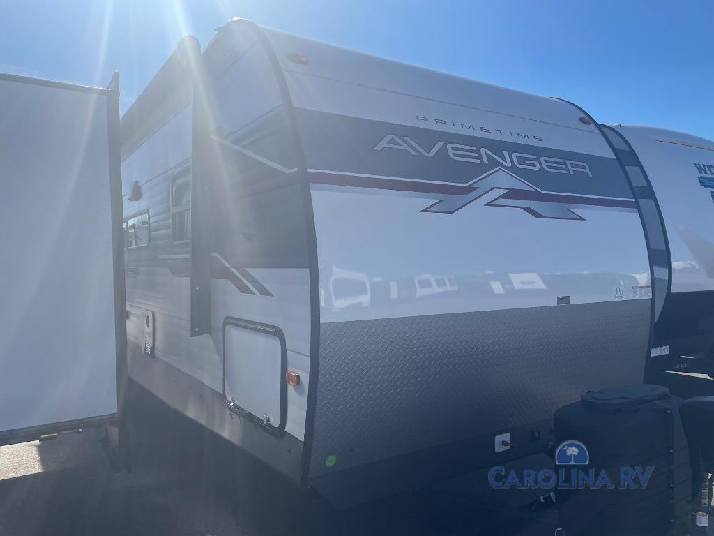 With any Avenger travel trailer by Prime Time, the exterior includes an aerodynamic smooth front metal, a diamond plate front rock guard for protection on the road, and four stabilizer jacks to keep your unit secure. There is a fully walkable roof plus an enclosed and heated underbelly that will help extend your camping season. The interior offers a 15,000 BTU air conditioner for the perfect climate inside, in-floor ducted heat, a systems monitor panel, and a Winegard 360+ antenna with Wi-Fi prep that will give you the option to stay connected as you camp. Each model also includes seamless Carefree Congoleum flooring, kitchen backsplash, shower pans in all models, and pleated nightshades throughout to name a few interior comforts!