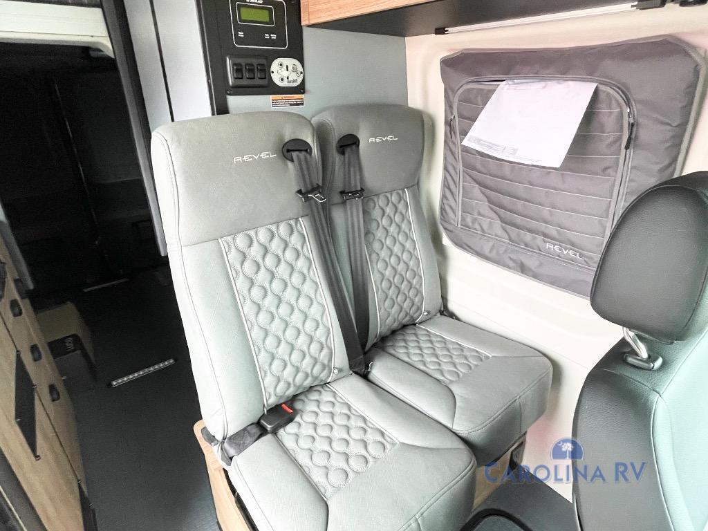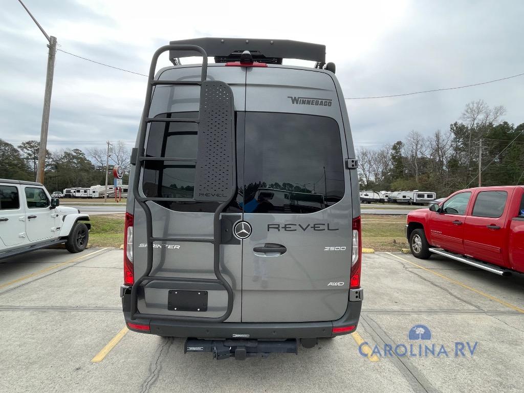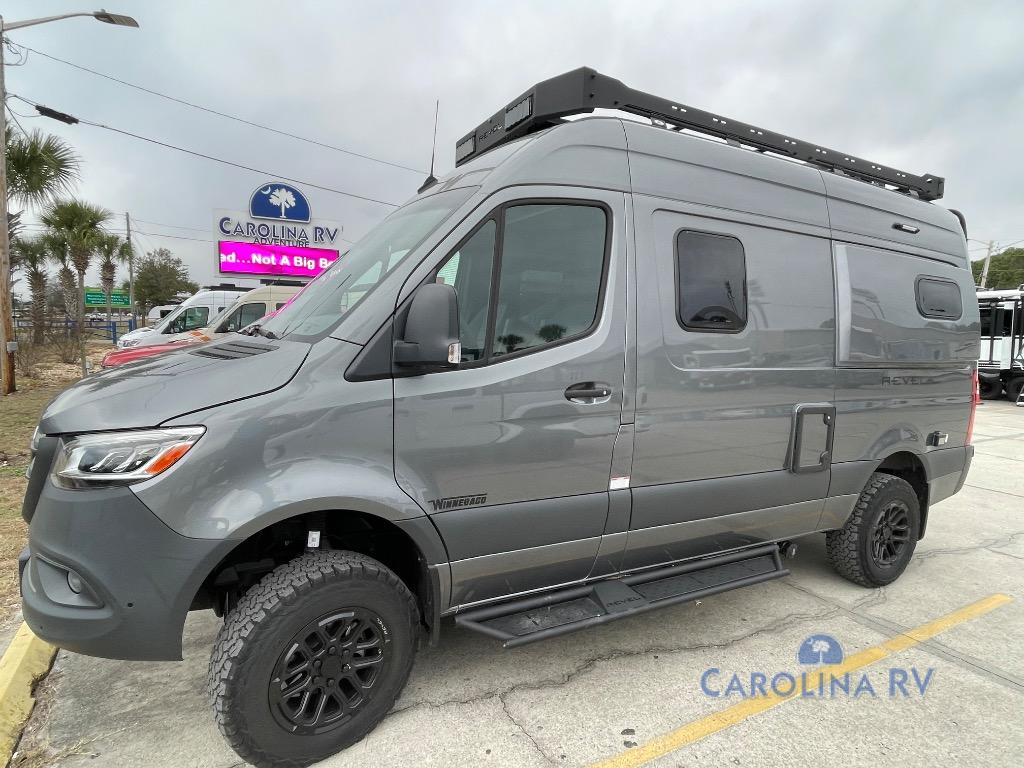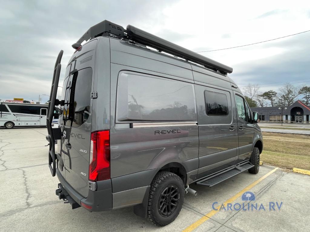 The Revel Class B diesel motorhome allows you to venture off-road thanks to the AWD Sprinter chassis with 2.0L high-output turbo-diesel 4-cylinder under the hood. The Winnebago Power MAX system (8.4kWh Lithionics lithium-ion battery with dual alternator charging capability) and Power Hub Pro which is an exclusive 5-in1 system that delivers off-grid power like nothing before allowing you to stay off-grid for up to 7 days . The interior provides a comfortable and relaxing space featuring modern decor including an updated galley with compression-latch cabinets, a new wall-mounted table, a semi-private wet bath, plus a power lift bed with WinnSleep® mattress technology, and the gear garage below the bed features (6) L-track bases for secure and flexible storage, plus cabinet storage and more. For the freedom to explore in any season, start treating roads like suggestions, and choose this Revel to get you anywhere you dream to go today!