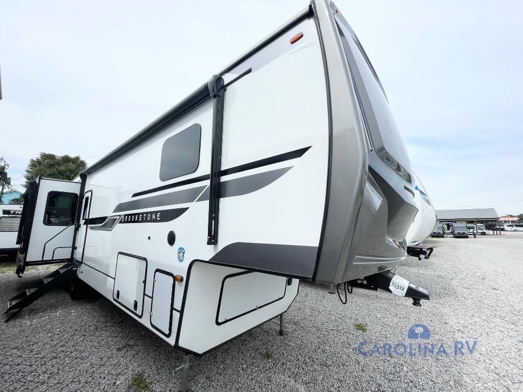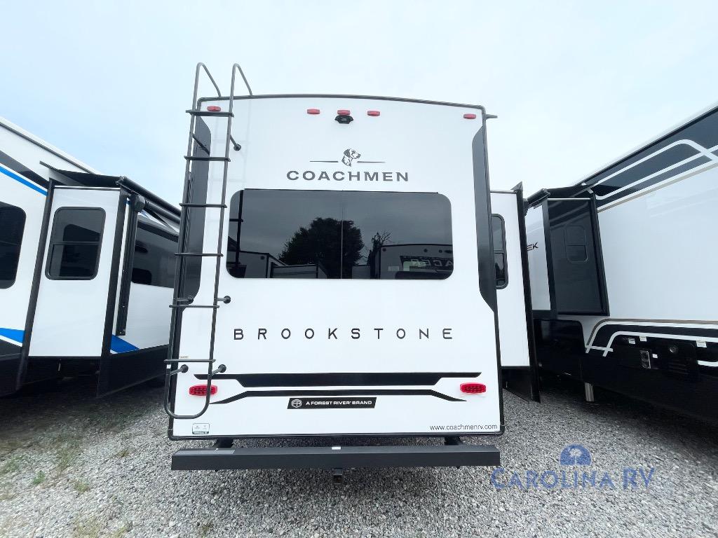 The Brookstone fifth wheels by Coachmen are coming to you with wide-body comfort, home-like amenities, and unique designs for a truly luxurious RV. The Weather Shield+ consists of a 6X double Azdel aluminum cage sidewall system, a Radiant Pro weather barrier system, and more that will help you extend your camping season or go full-time. Head inside to find solid surface countertops in the kitchen, an 4K Smart LED TV in the living room, slow rise roller night shades, and the list of comforts goes on! The Brookstone also includes 6-point electric auto-leveling, four Solid Step entry steps, an electric awning with LED lights, and many more exterior conveniences!