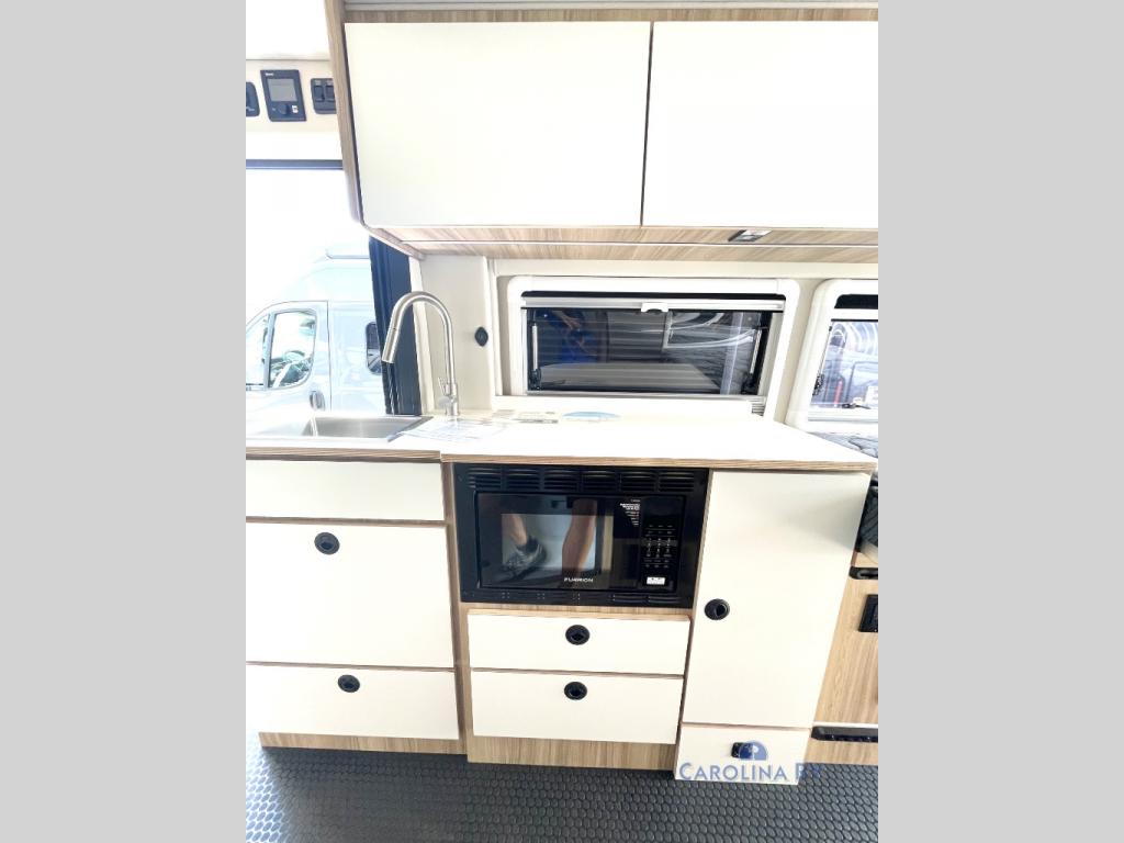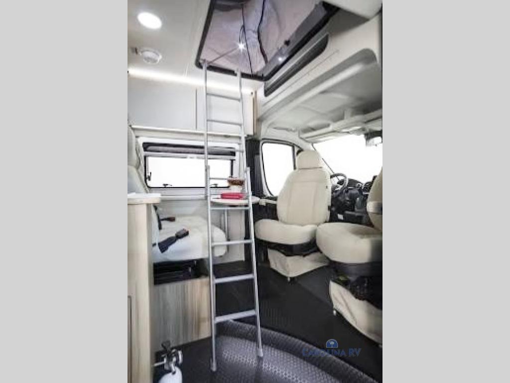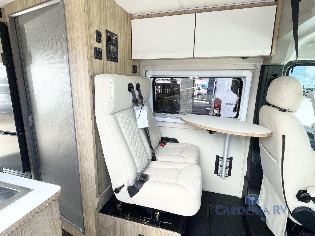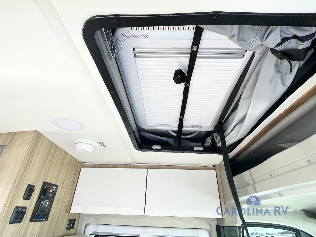 Start a new adventure across the states in this cozy coach! Once you arrive at the campground, you can make lunch on the induction cooktop or in the air fryer/convection microwave. There is also a 7.3 cu. ft. refrigerator with a pull-out freezer drawer to keep your food fresh. You'll find multiple overhead cabinets to keep your belongings tucked out of the way, and the compact wet bath will let you freshen up after a day outdoors. Up front, you'll find two captains seats plus two additional cab seats with a removable table and storage boxes. The 56" x 77" Murphy bed provides versatile sleeping space when you're ready to get some shut-eye. If you're needing additional sleeping space, you can choose the optional pop-top. When the optional pop-top is chosen, the standard Truma A/C is changed out for a Coleman Mach 10 A/C; see dealer for more details.