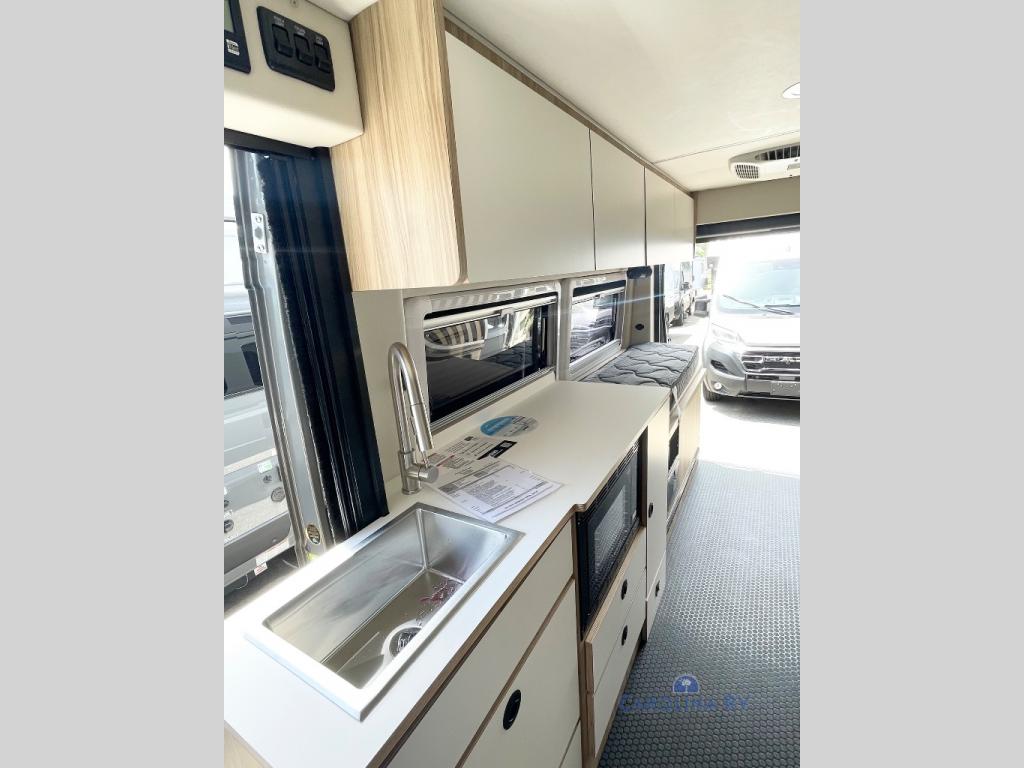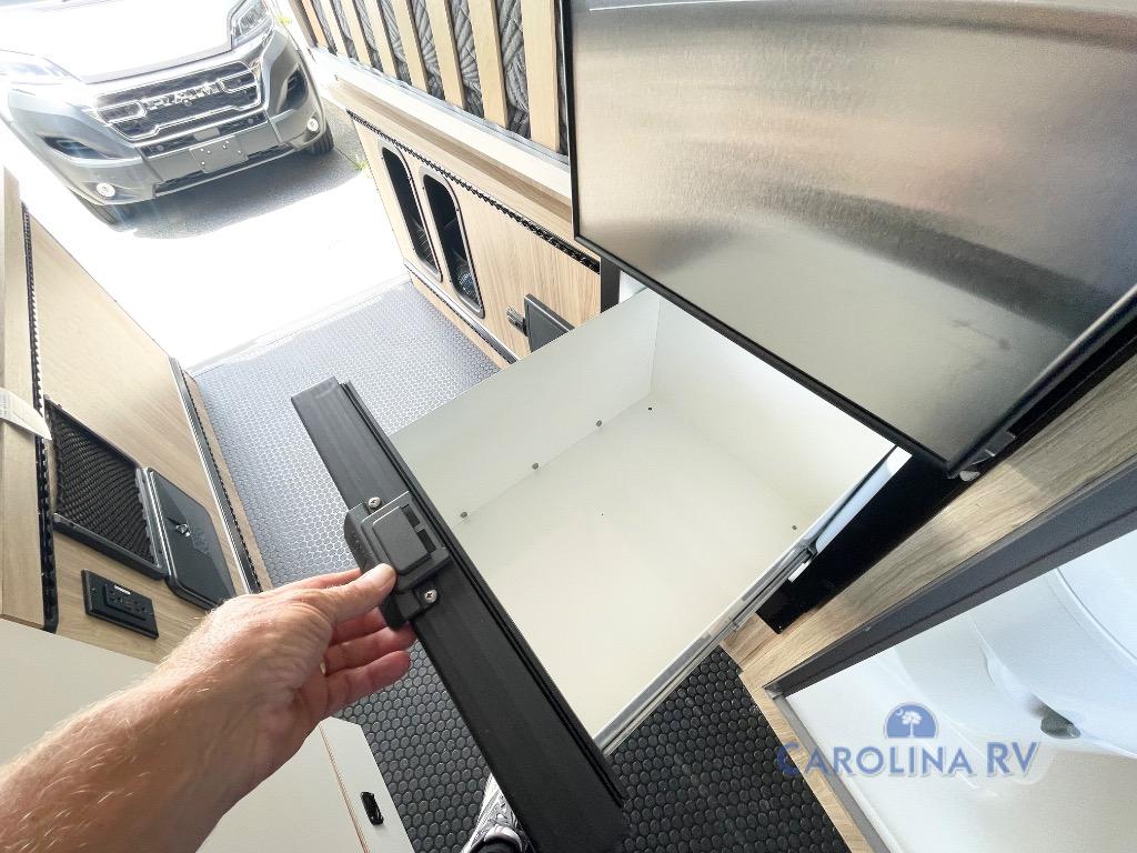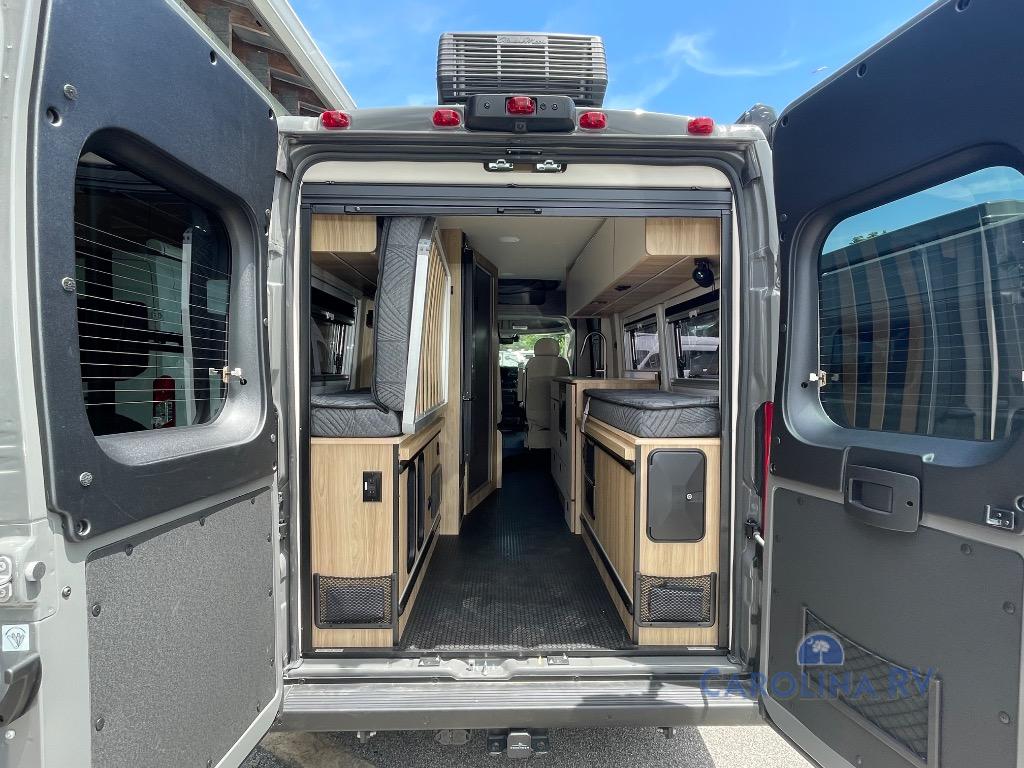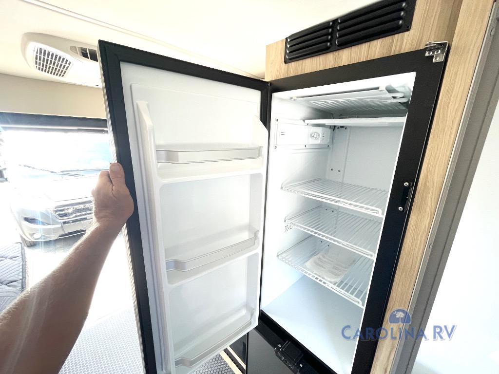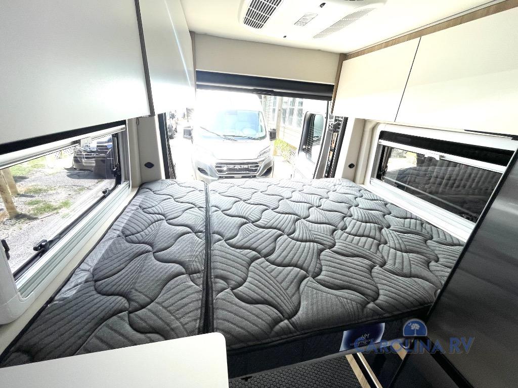 Start a new adventure across the states in this cozy coach! Once you arrive at the campground, you can make lunch on the induction cooktop or in the air fryer/convection microwave. There is also a 7.3 cu. ft. refrigerator with a pull-out freezer drawer to keep your food fresh. You'll find multiple overhead cabinets to keep your belongings tucked out of the way, and the compact wet bath will let you freshen up after a day outdoors. Up front, you'll find two captains seats plus two additional cab seats with a removable table and storage boxes. The 56" x 77" Murphy bed provides versatile sleeping space when you're ready to get some shut-eye. If you're needing additional sleeping space, you can choose the optional pop-top. When the optional pop-top is chosen, the standard Truma A/C is changed out for a Coleman Mach 10 A/C; see dealer for more details.
