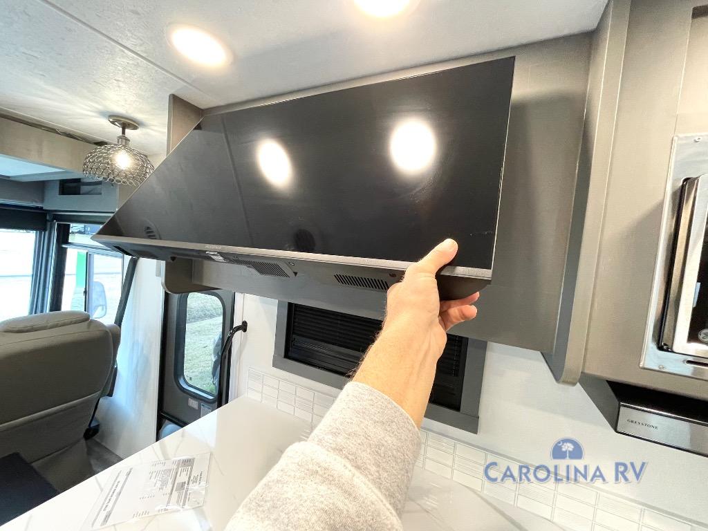 The whole gang will love this motorhome thanks to its drop-down overhead bunk, rear private bedroom, and 71" bunk/office/wardrobe space for versatility! Once breakfast has been prepared on the stainless steel three burner range, everyone can dine at the booth dinette or sit on the 63" sofa within the large slide out. There is a 40" LED TV across from the sofa for convenience, and you'll find two additional TVs; one in the bedroom and one outside! This model includes a full bath with a shower skylight, a retractable shower door, and a power bath vent to keep everything fresh. After you've gotten ready for the day, head outdoors to relax under the 17' power awning and watch the big game on the exterior TV!