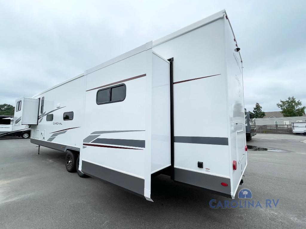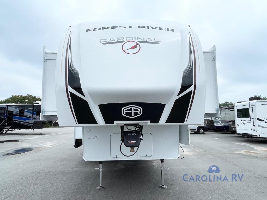 With any Cardinal fifth wheel by Forest River you will enjoy affordable luxury at every turn. These models are constructed with residential fiberglass insulation in the roof and floor, a sectioned ABS plastic underbelly armor, and a vacuum bonded, welded aluminum structure for added strength and durability. You will also find seamless roto-cast holding tanks, an outdoor shower, and 4-point auto leveling for quick and easy setup. There are carpet-free living spaces, residential backsplash, motion lighting throughout, and many more comforts!