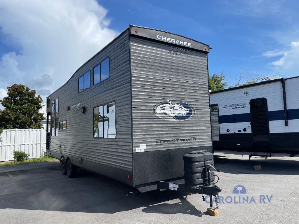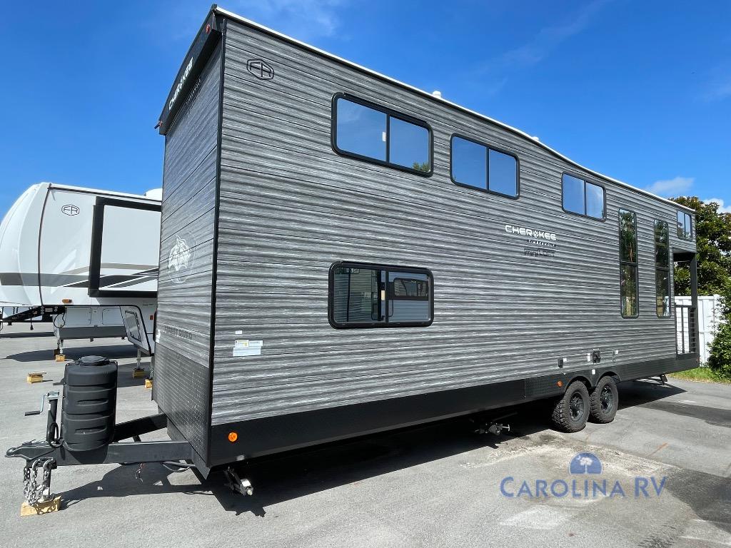 Enjoy comforts of home wherever you decide to roam in a Cherokee Timberwolf destination trailer by Forest River. The seamless roofing membrane with heat reflectivity provide a durable foundation to your RV. You will also appreciate the exclusive solar thermo controlled reflective tinted safety glass windows and an on-demand tankless water heater to make extended stays easier than ever. Inside, the night shades will provide your crew with privacy. There are also seamless countertops, along with a premium bedding ensemble and comforter, USB charging stations, a supersized central A/C unit, and many more comforts!
