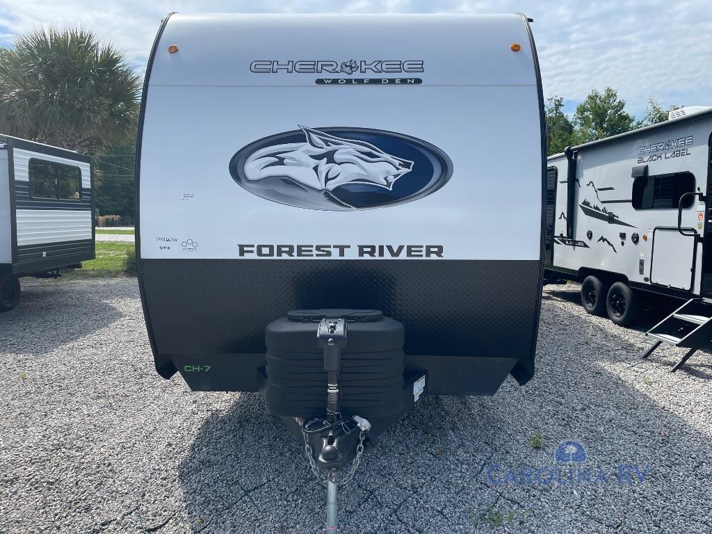 If the open road is calling your name, then answer it with one of these Forest River Cherokee Wolf Den travel trailers! They are built with an aerodynamic smooth radius front profile, a one-piece walkable decked roof, and a Cherokee exclusive stable step with oversized landing. There are also four stabilizer jacks outside, along with ladder prep, a premium wheel package and exclusive solar thermo controlled reflective tinted safety glass windows. The seamless countertops inside will be easy to keep clean, and the premium bedding will have you feeling right at home. There are also USB-C charging stations to keep your electronics charged and ready to go, plus many more stand-out features!