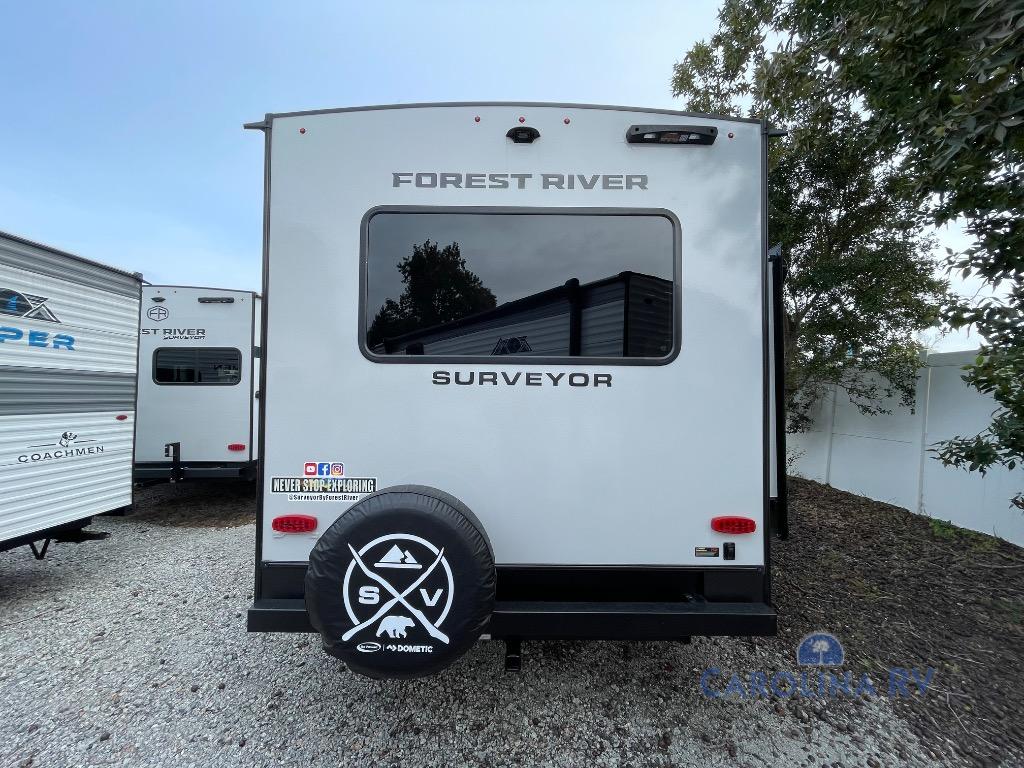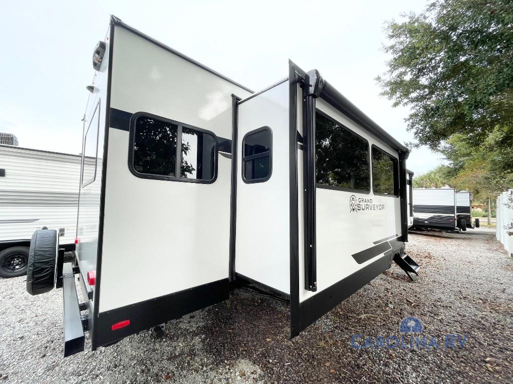 With any Grand Surveyor travel trailer by Forest River you will enjoy turn-key ready-to-go features and quality construction! Each model includes Azdel composite walls and a gel coated fiberglass front cap with an automotive style tinted windshield for a sleek look. There are friction hinge black glass entry door(s), an adjustable platform step with a night light, plus Goodyear tires and a power tongue jack for easy towing. The interior will have you feeling right at home with roller shades, residential faucets, sinks, and bathroom vanity, plus Surf(x) seamless countertops throughout. You can also plan for adventure with a 2" rear accessory and exterior spray port, and there are slam latch exterior baggage doors throughout to keep all your gear secure. Other stand-out features include a central vacuum system, a 200 watt solar panel with a 30 amp controller, a tankless water heater, carpet-free interiors, and the list goes on!