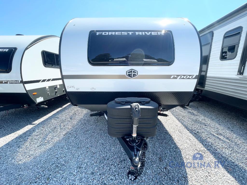 With any R-Pod travel trailer by Forest River, you will enjoy affordable luxury at the lowest tow weight in its class! There is a sealed underbelly with forced heat, a curved dual-pane acrylic front window with a bug screen and night shade, plus a large roof mounted solar panel for off-grid capabilities. The 15K A/C unit will keep you comfortable during the summer camping months, and the tankless water heater will provide endless hot showers after hiking, biking, swimming and more! Each model also includes a black glass friction hinge entrance door, roof ladder prep, exterior motion lighting, plus a hot and cold exterior spray port to wash off sand from the beach. Inside, you'll enjoy seamless Surf-X kitchen countertops, blackout roller shades, and a central vacuum system for hassle-free cleaning!