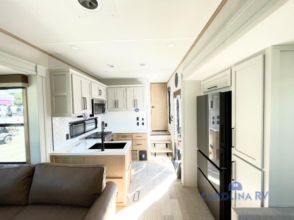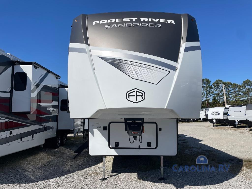 You will find the perfect balance of size, space, features, and luxury with any one of these Forest River Sandpiper fifth wheels! They have a cambered powder coated frame with rust prohibitor, and a fully enclosed underbelly for added protection against the elements. Also, the power front jacks with spring-loaded pins enhance the convenience, speed, and safety. The large, tinted windows come with a 80/20 UV prohibitors. Some hassle-free amenities include a 60k BTU on-demand water heater, porcelain foot flush toilet(s), tire pressure monitor system, and an electric leveling system! Inside, you'll enjoy stainless steel kitchen package, solid surface kitchen countertops, Beachside Sundance Congoleum linoleum, recessed residential lighting, and many more comforts!