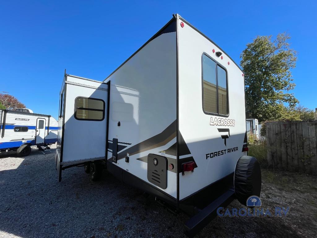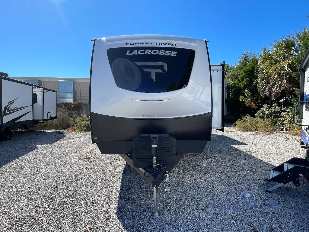 You will be ultra impressed by this LaCrosse travel trailer! First, the interior is made to feel just like your own home with its theater seating, hide-a-bed sofa, free-standing table with chairs, and entertainment center with 50" LED TV and fireplace. Second, you'll find even more residential comfort in the rear kitchen that has a three burner cooktop, a 30" microwave oven, and a 16.2 cubic foot 12V refrigerator. And lastly, the walk-through bathroom has two doors on either side with one of those doors leading directly into the front private bedroom, so you know you'll enjoy great comfort in this space each night. There is also a bedroom bench at the front of this trailer which gives you an enjoyable place to relax as you take in the views from the front windshield.