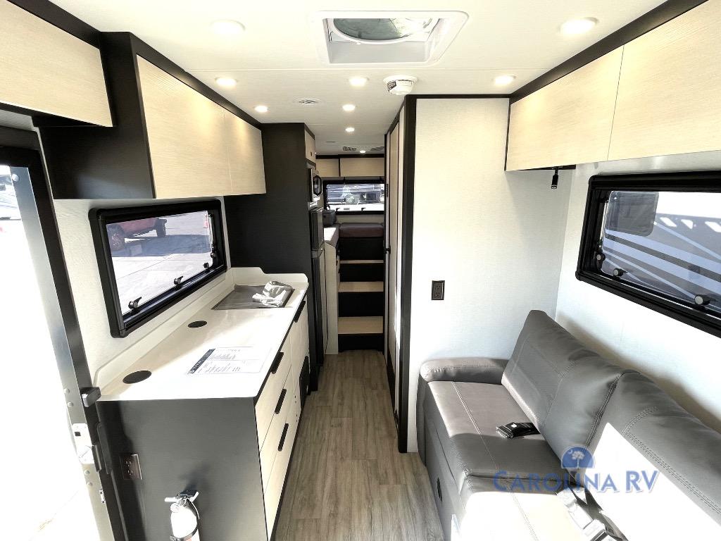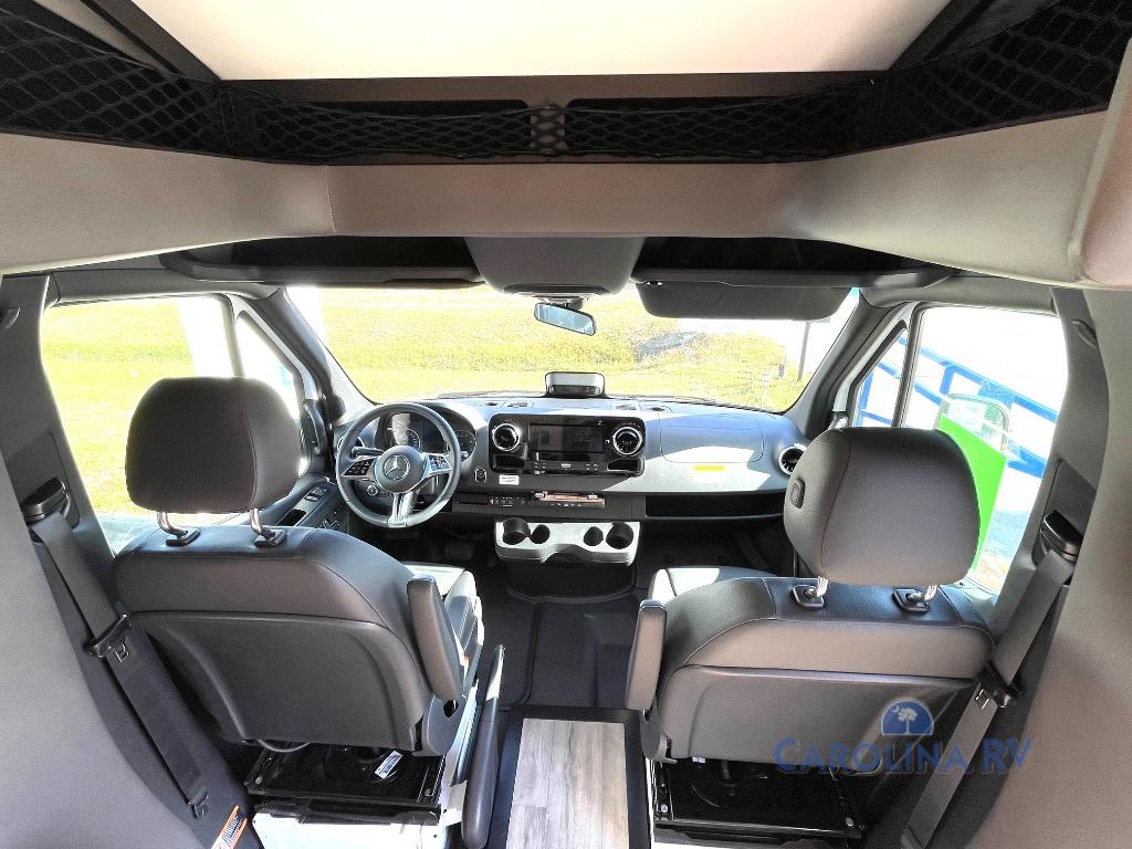 If you're an outdoor enthusiast who doesn't want to sacrifice comfort, this coach is for you! The premium Mercedes captain's seats include heat for added comfort plus they can swivel around to become part of the living area seating. You can make lunch on the single burner portable induction stove or in the stainless steel microwave/air fryer. There is a sleeper sofa for cozy seating and additional sleeping space for a guest, or you can choose the optional L-shaped lounge if you're wanting a table. The full residential-style wet bath includes a roof vent fan, towel and toilet paper holders, an oversized mirror, plus a large black aluminum under-sink cabinet with a GFCI outlet to plug in any accessories you may need. Head to the rear of this coach to find the 32" x 76" twin beds with a nightstand in between, or you can convert them into one king-size bed. There is also an overhead cabinet and dual pull-out closets so you both have a place for your things!