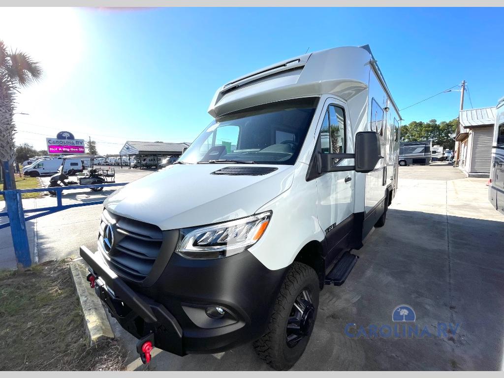 The Open Trail by Tiffin Motorhomes will do just that; take you on the open trails! This Class C diesel coach sits on the durable Mercedes-Benz 3500XD AWD dual wheel cutaway chassis, allowing you to venture off-road when the adventure calls for it. You will also appreciate the added safety features, such as active brake assist, Active Distance Assist Distronic (adaptive cruise control), active lane keeping assist and more! The 3.2 kW RVMP diesel generator and 270 AH Battleborn lithium battery pack will keep you powered up, and you can choose the optional Lithionics battery system and optional (2) 200W solar panels to keep you off-grid for even longer periods of time. An Aqua View Showermiser system and hydronic hot water heater provide added comfort when it's time to clean up, and the black powder coated aluminum cabinetry throughout is ultra durable to withstand your adventrous lifestyle. Outside, you'll find riveted all-aluminum body molding, full-body paint with two layers of clear coat, a heavy duty off-road front bumper, and high performance Diamond shield protective film for added durability.