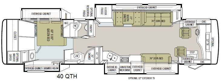 Quad Slide Phaeton Class A Diesel w/Rear Queen Bed Slide w/Nightstands & Overhead Cabinet, Closet, 32" LCD TV w/Drawers Below Slide, 36" Shower, Lav., Private Toilet Area w/Lav., Pantry, 4-Door Refrig./Booth Dinette & 74" Sofa Bed Slide, 2nd 74" Sofa Bed/Range w/Convection Microwave/Double Kitchen Sink Slideout, 32" LCD TV Inside and More! Available Options May Include: Washer/Dryer, Free Standing Dinette, 32" LCD TV Above Cab & 32" Exterior TV, Powerglide Chassis.