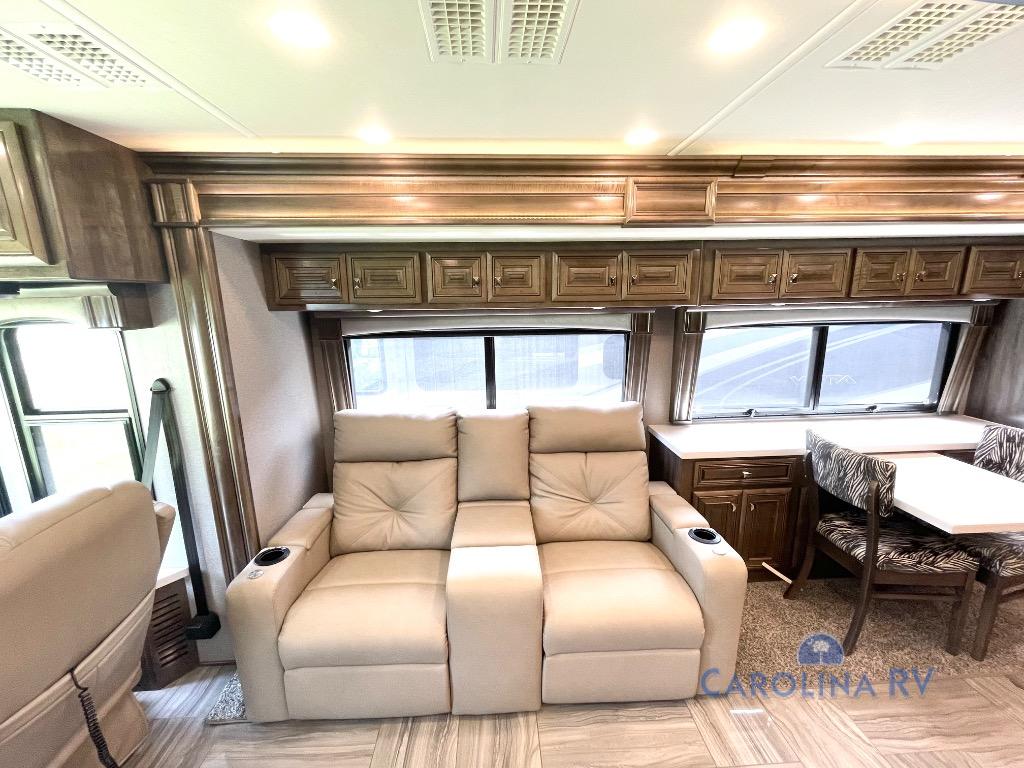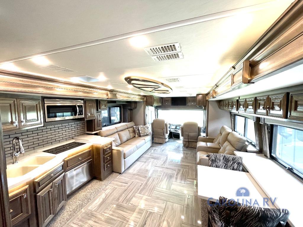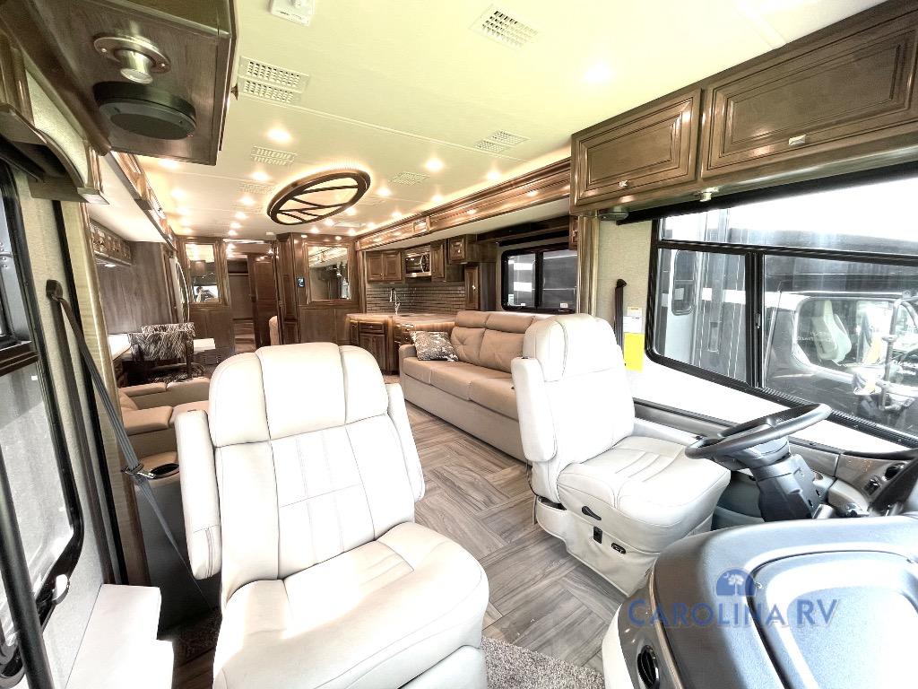 With any Fleetwood Discovery LXE class A diesel coach you will enjoy the journey and the destination. Each model has a Power Bridge chassis on the Freightliner XCM Series with a Cummins ISL 9L diesel engine, plus luxury features and technology throughout. The driver will appreciate the 10.2" Magnadyne radio touch screen with Bluetooth, navigation, App store and Wifi, the 55 degree wheel cut, the 18" Smart steering wheel with leather wrapped rim, and the 7" backup color monitor. You will love the living room floor heat on those cooler evenings, the feel and look of the residential style furniture and the polished porcelain tile flooring throughout, plus there is many more upgrades that will allow you to explore in comfort and modern style!