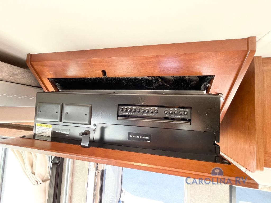 When you take a trip in this Vista Class A gas motorhome, you take a trip in style. The modern flourishes, like the vinyl flooring and framed wall mirror, are what add a touch of elegance to this motorhome. The rear private bedroom allows you to escape the chaos each evening while the rest of the family gathers in the living room to watch a movie on the 40" HDTV. Powered ventilator fans are located throughout the coach to keep fresh air constantly circulating, and the tinted windows keep the sun's harmful rays from damaging the beautiful interior of this motorhome.
