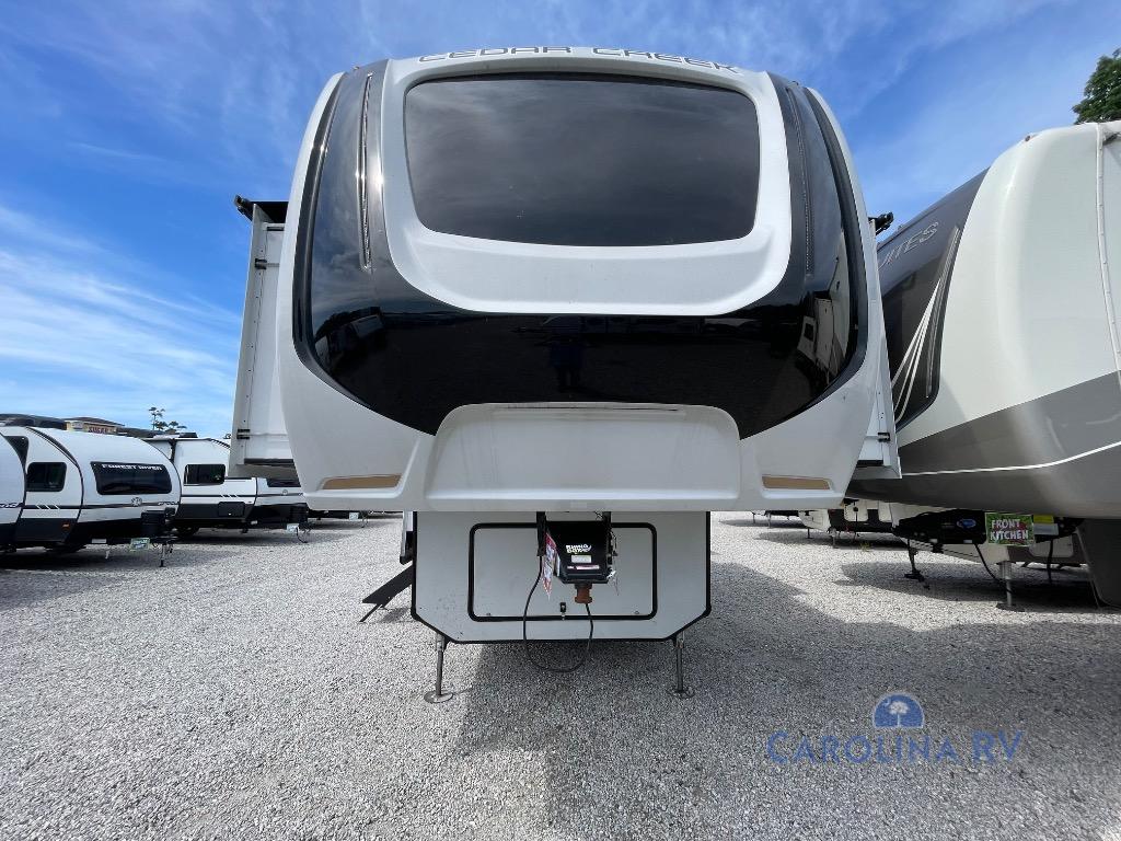 You will have peace of mind camping with any one of these Forest River Cedar Creek fifth wheels or fifth wheel toy haulers! Their aluminum superstructure, high gloss gelcoat exterior, and Dexter heavy duty axles with E-Z lube hubs will outlast all of your adventures. The Silaprene bonded sidewalls resist UV, heat, cold, oils, and highway chemicals with a bond that grows stronger with age while resisting delamination too. With the Vegatouch panel and Firefly dimmer switches, you can have total control of your unit in the palm of your hand. The exterior full docking station has multi-function tank levers, black tank flush, 12V battery disconnect, and an outside shower to keep the dirt where it belongs. The congoleum flooring throughout not only makes you feel right at home, but is also easy to clean. Come find the right model for you today!