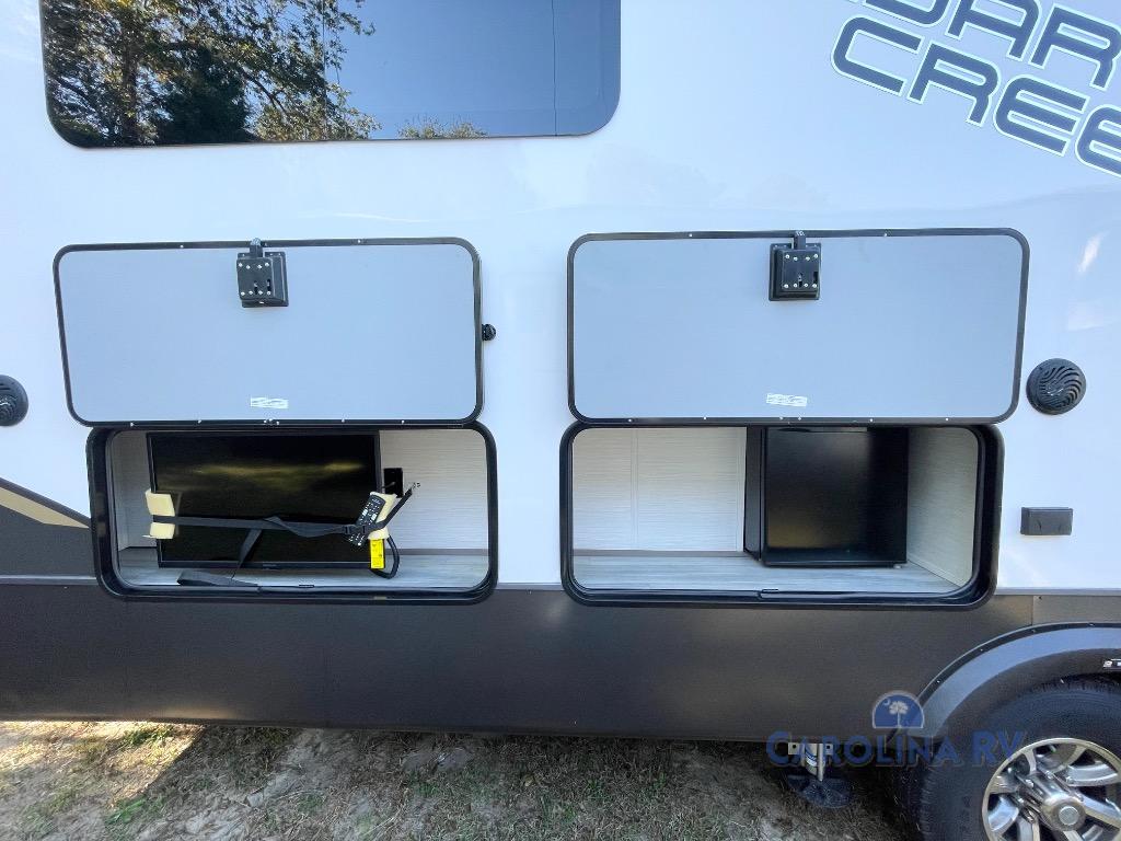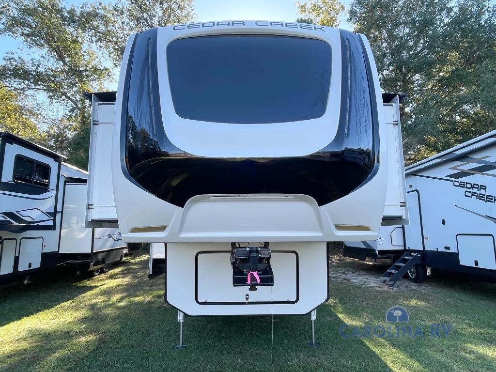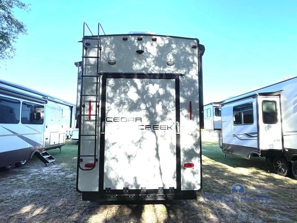 You will have peace of mind camping with any one of these Forest River Cedar Creek fifth wheels or fifth wheel toy haulers! Their aluminum superstructure, high gloss gelcoat exterior, and Dexter heavy duty axles with E-Z lube hubs will outlast all of your adventures. The Silaprene bonded sidewalls resist UV, heat, cold, oils, and highway chemicals with a bond that grows stronger with age while resisting delamination too. With the Vegatouch panel and Firefly dimmer switches, you can have total control of your unit in the palm of your hand. The exterior full docking station has multi-function tank levers, black tank flush, 12V battery disconnect, and an outside shower to keep the dirt where it belongs. The congoleum flooring throughout not only makes you feel right at home, but is also easy to clean. Come find the right model for you today!