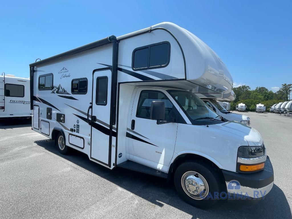 With any Entrada Class C gas motorhome from EAST TO WEST, the construction consists of an automotive painted fiberglass front cap, a Dicor DiFlex ll TPO roof membrane, and Azdel composite sidewalls for added durability. Some of the Entrada value package features include 12V tank heaters to camp during the cooler months, the Winegard Air 360+, plus backup and sideview cameras with a monitor for safety on and off the road. The interior offers a 7-foot interior height for a spacious feel, and 12V USB charge ports will keep your electronics powered up. Choose an Entrada for its tasteful design, attention to detail, bright interior and affordable price-point!
