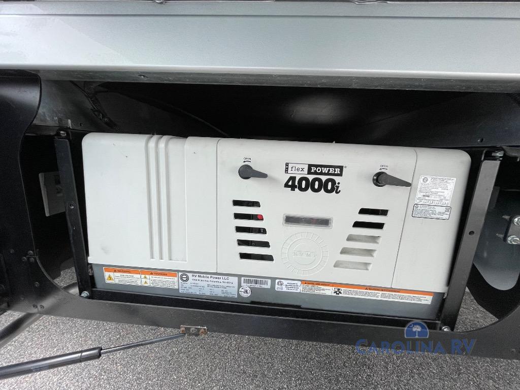 The perfect couples coach or for a family of three or four! You will be able to easily set up the queen Murphy+ bed when it's time for bedtime while the kids or your guests sleep on the 49" x 75" cabover bunk. You can also choose the optional low profile front cap with storage if you do not need the added sleeping space. An optional 3800W RVMP Flex Power generator is also available with this model. Everyone can get cleaned up in the full bathroom that has a space-saving sliding door and large wardrobe along the very rear that features a gear garage below. Create yummy meals and snacks using the kitchen appliances and the flip-up counter, then dine at the fold-down table with chairs, or eat seated on the theater seating with lap tables nearby on either side.